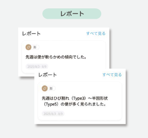 専用アプリで、毎日の便の状態や傾向、その状態に合わせたリコメンドなどを表示。